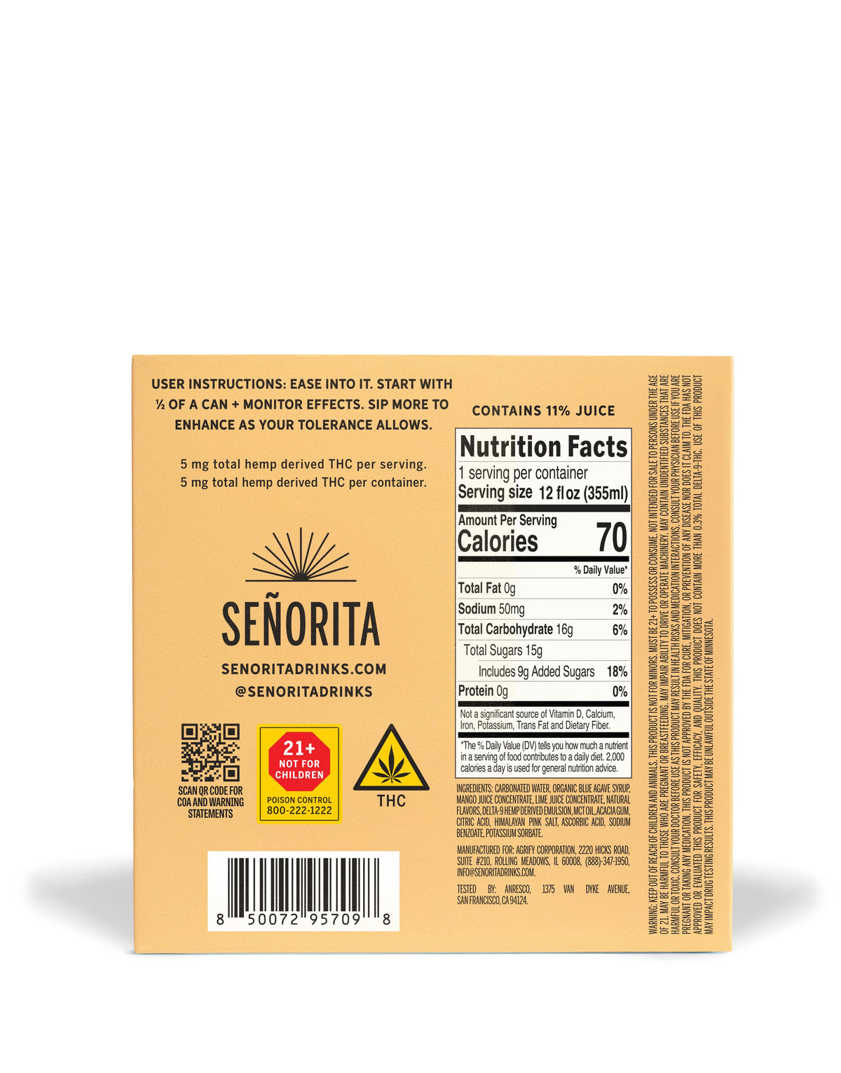 Yes. Señorita THC beverages use delta-9 THC which is derived from hemp. The Agricultural Improvement Act of 2018, known as the Farm Bill, allows states to create their own rules for hemp-derived products.